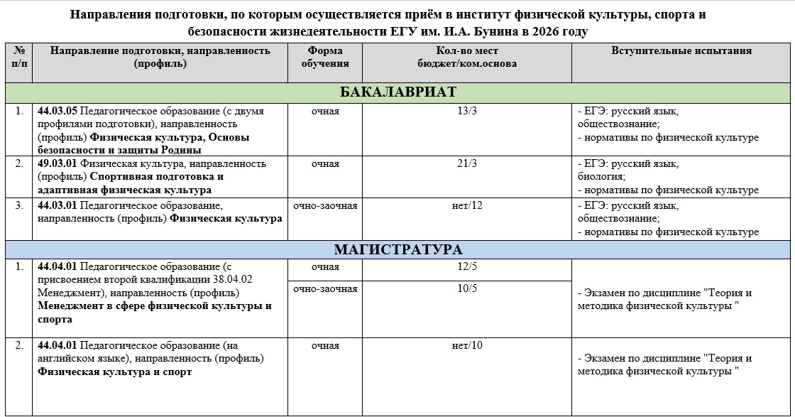 ЕГУ им. И.А. Бунина © 2026 | Институт физической культуры, спорта и БЖ