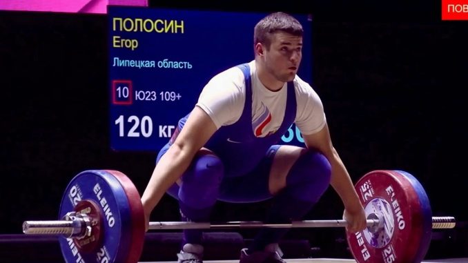 Егор Полосин выступал в категории +109 кг и по итогам первенства России показал 6-й результат в своей весовой категории, попав в ТОП-6 сильнейших молодых тяжелоатлетов страны
