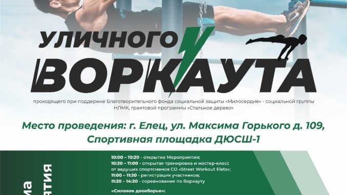 10:20 – 11:00 — открытая тренировка и мастер-класс от ведущих спортсменов СО «Street Workout Elets»;